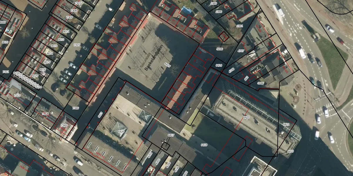 Het perceel waarop Baekelandplein 22 staat heeft een oppervlakte van 2640 m². Dit is een zeer groot perceel. De perceeloppervlakte wordt geregistreerd door het Kadaster. Gedetailleerde informatie over de maten van dit perceel kunt u vinden in het rapport Kadastrale kaart met maatvoering van Baekelandplein 22.