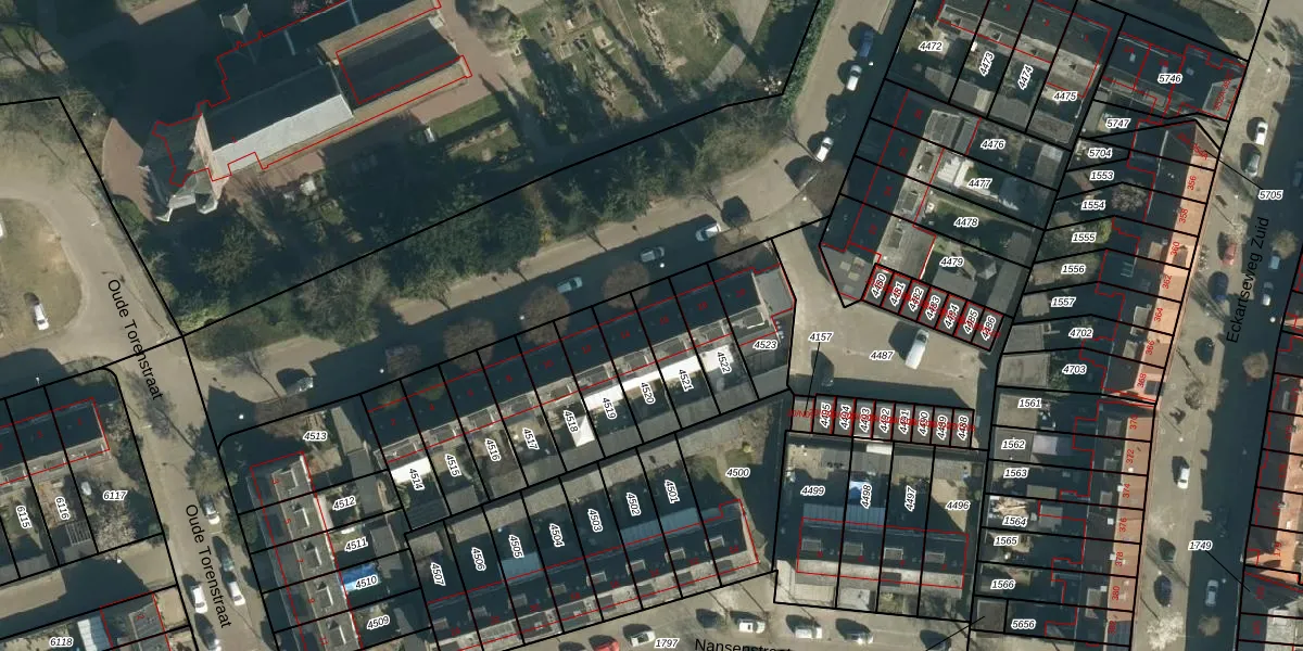 Gebruik de zoekbalk of klik op een perceel voor informatie over de adressen binnen dit perceel.