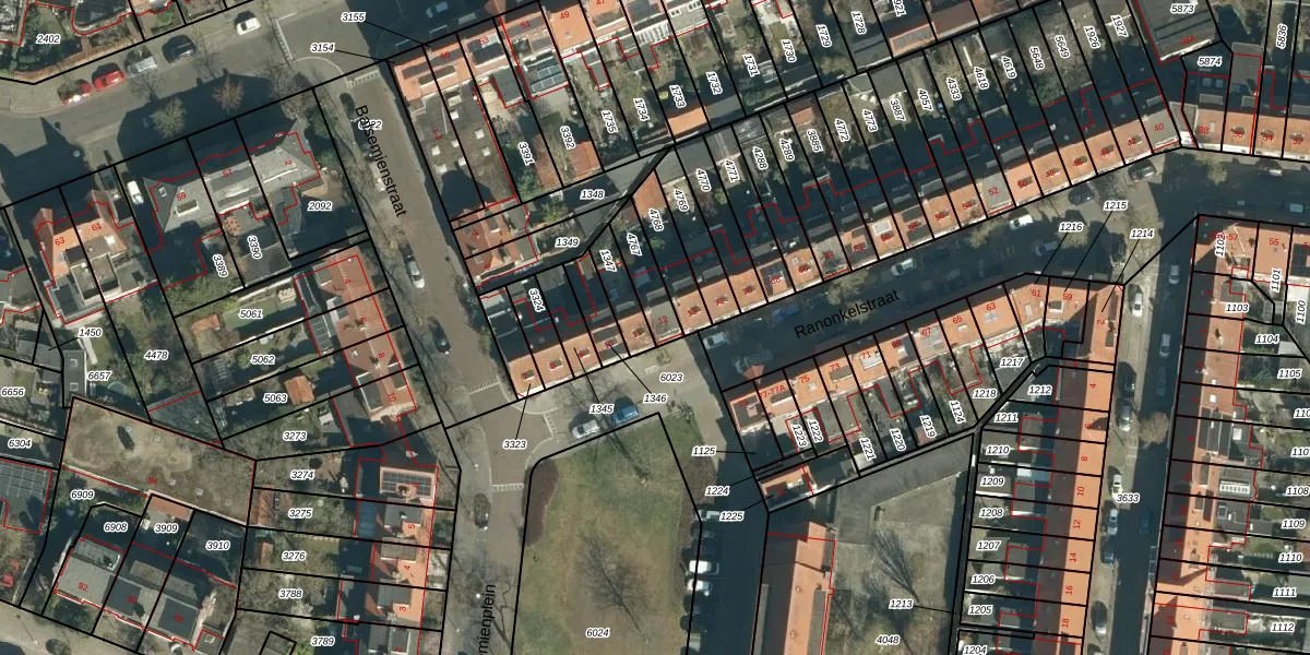 Gebruik de zoekbalk of klik op een perceel voor informatie over de adressen binnen dit perceel.