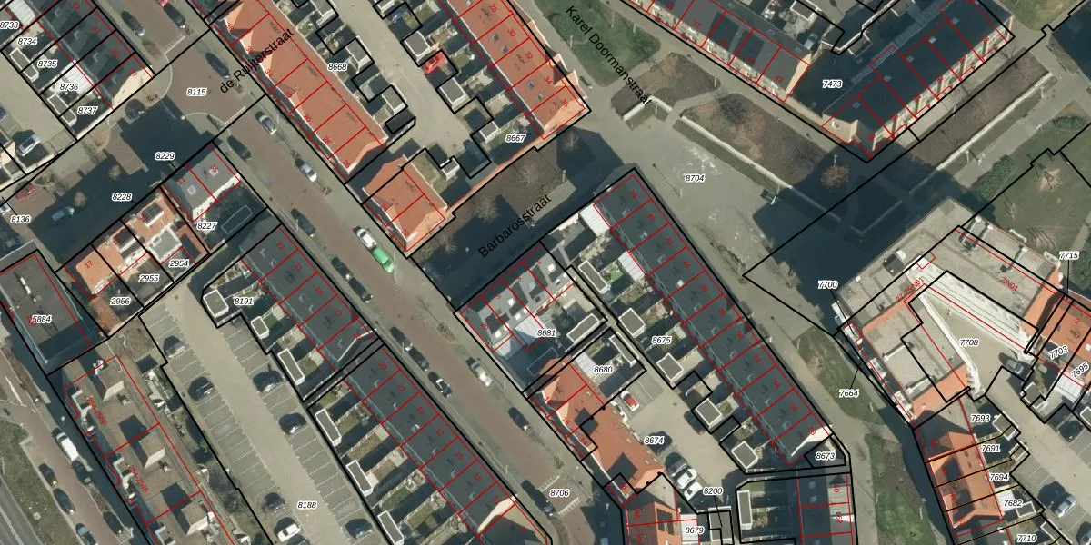 Barbarosstraat 1 is gelegen op kadastraal perceel WSL01G8681. Deze kadastrale aanduiding is uniek en wordt gebruikt door het Kadaster om eigendomsrechten en andere zakelijke rechten vast te leggen. Het perceel maakt onderdeel uit van de kadastrale gemeente Woensel.