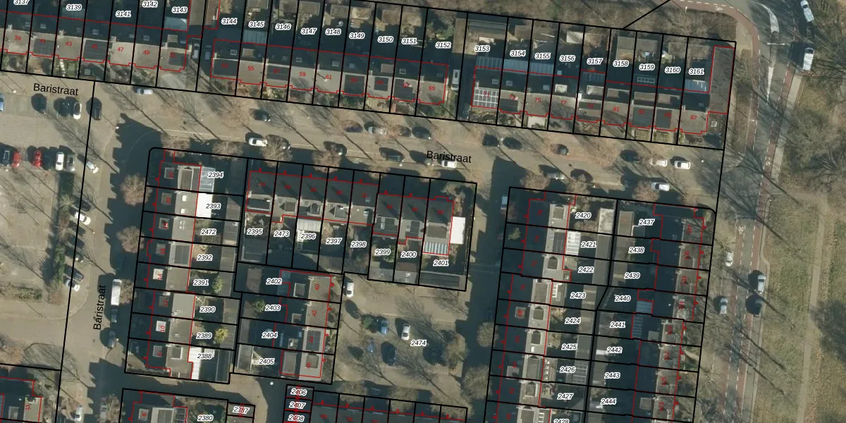 Het perceel waarop Baristraat 36 staat heeft een oppervlakte van 153 m². Dit is een middelgroot perceel. De perceeloppervlakte wordt geregistreerd door het Kadaster. Gedetailleerde informatie over de maten van dit perceel kunt u vinden in het rapport Kadastrale kaart met maatvoering van Baristraat 36.