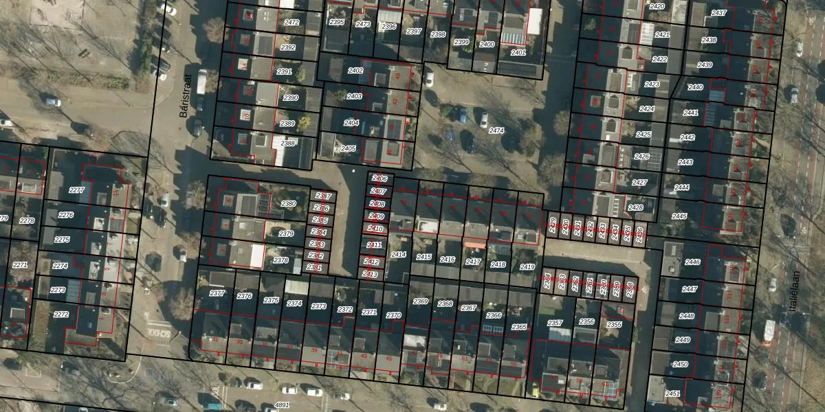 Het perceel waarop Baristraat 48 staat heeft een oppervlakte van 156 m². Dit is een middelgroot perceel. De perceeloppervlakte wordt geregistreerd door het Kadaster. Gedetailleerde informatie over de maten van dit perceel kunt u vinden in het rapport Kadastrale kaart met maatvoering van Baristraat 48.