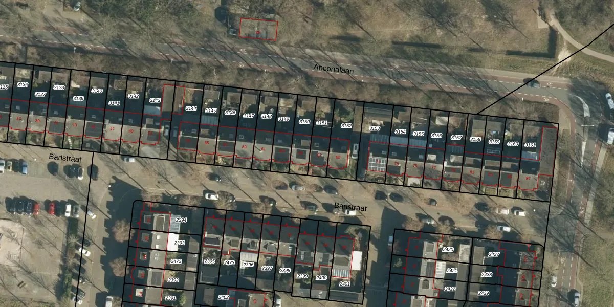 Het perceel waarop Baristraat 65 staat heeft een oppervlakte van 159 m². Dit is een middelgroot perceel. De perceeloppervlakte wordt geregistreerd door het Kadaster. Gedetailleerde informatie over de maten van dit perceel kunt u vinden in het rapport Kadastrale kaart met maatvoering van Baristraat 65.