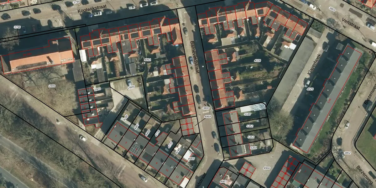 Het perceel waarop Barneveldstraat 8 staat heeft een oppervlakte van 2357 m². Dit is een zeer groot perceel. De perceeloppervlakte wordt geregistreerd door het Kadaster. Gedetailleerde informatie over de maten van dit perceel kunt u vinden in het rapport Kadastrale kaart met maatvoering van Barneveldstraat 8.