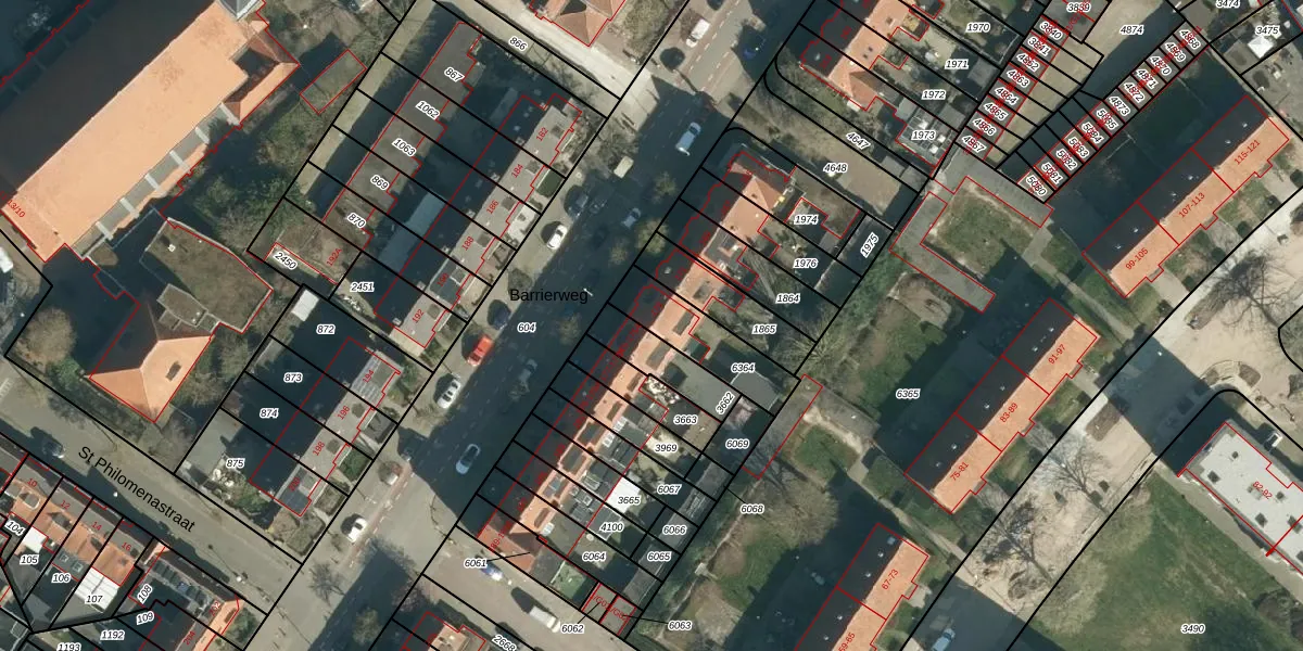 Gebruik de zoekbalk of klik op een perceel voor informatie over de adressen binnen dit perceel.