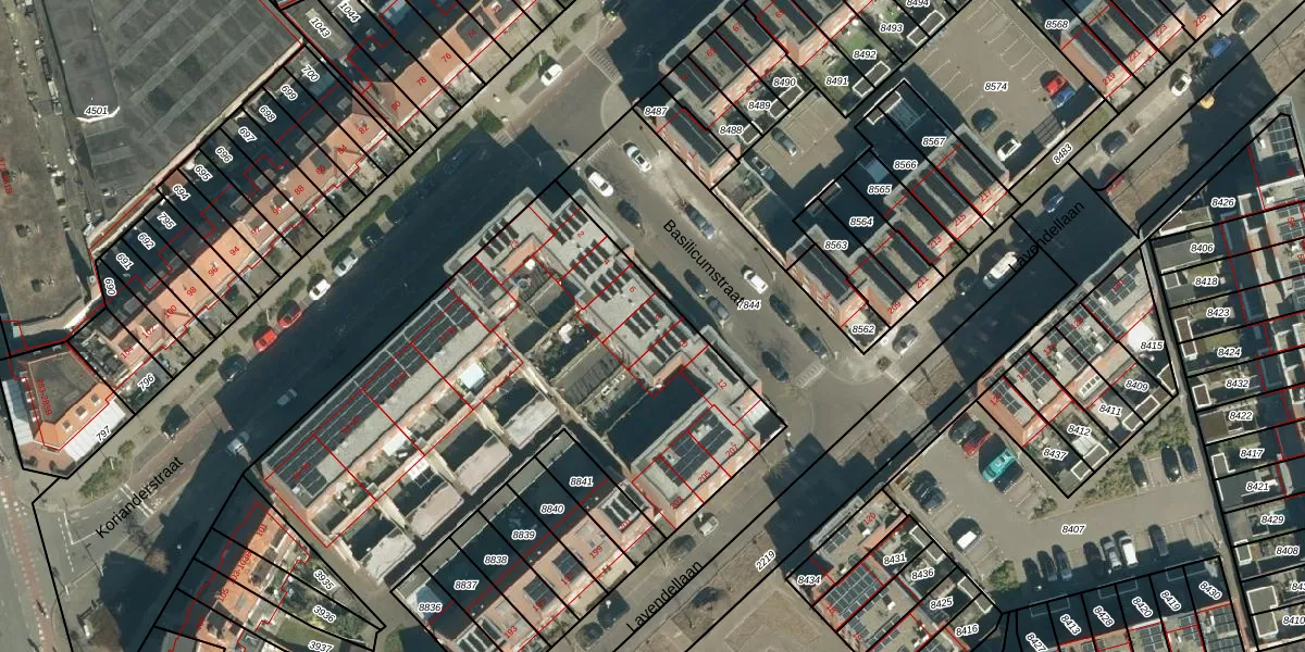 Basilicumstraat 8 is gelegen op kadastraal perceel STM00D8842. Deze kadastrale aanduiding is uniek en wordt gebruikt door het Kadaster om eigendomsrechten en andere zakelijke rechten vast te leggen. Het perceel maakt onderdeel uit van de kadastrale gemeente Stratum.