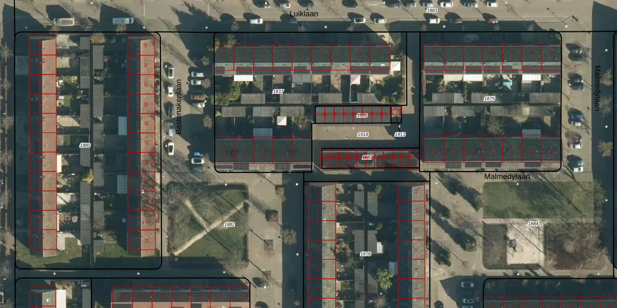Het perceel waarop Bastenakenlaan 20 staat heeft een oppervlakte van 2187 m². Dit is een zeer groot perceel. De perceeloppervlakte wordt geregistreerd door het Kadaster. Gedetailleerde informatie over de maten van dit perceel kunt u vinden in het rapport Kadastrale kaart met maatvoering van Bastenakenlaan 20.