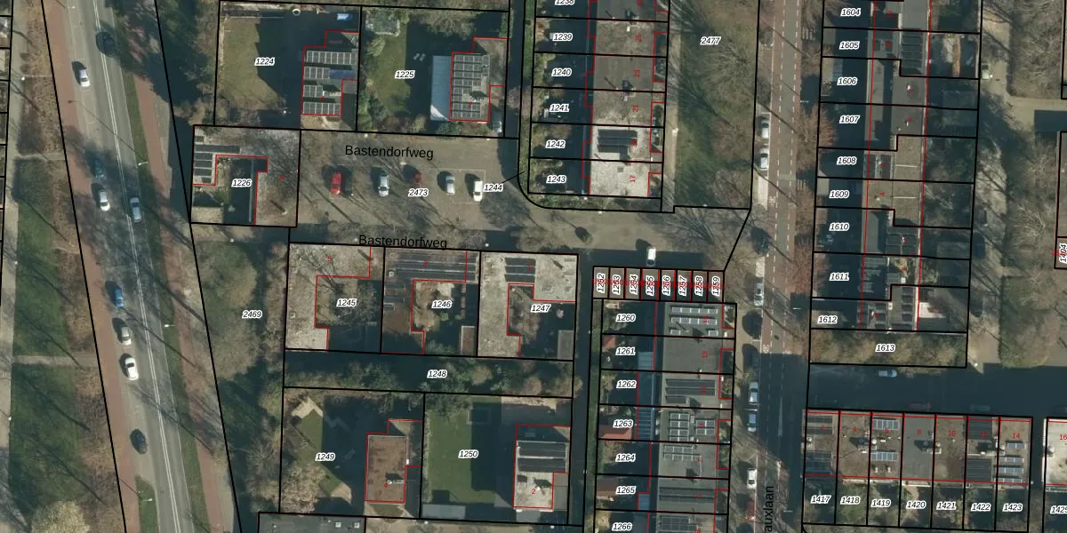 Bastendorfweg 1 is gelegen op kadastraal perceel WSL01P1247. Deze kadastrale aanduiding is uniek en wordt gebruikt door het Kadaster om eigendomsrechten en andere zakelijke rechten vast te leggen. Het perceel maakt onderdeel uit van de kadastrale gemeente Woensel.