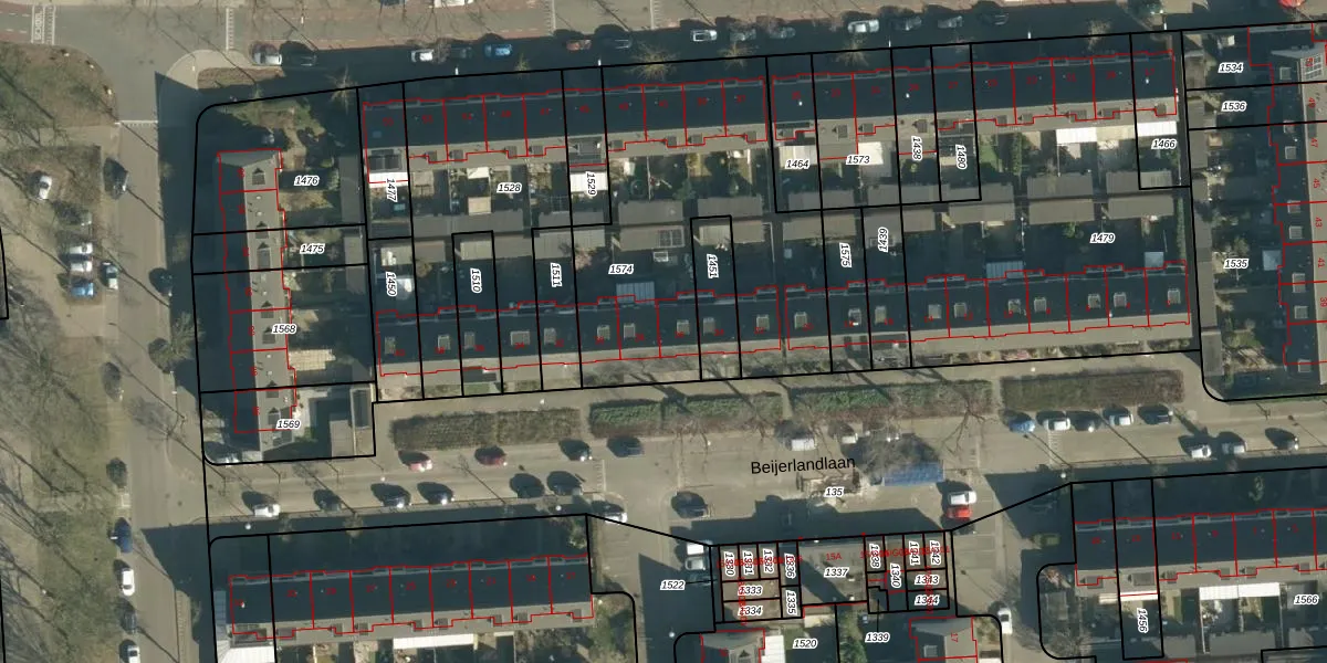 Het perceel waarop Beijerlandlaan 26 staat heeft een oppervlakte van 1366 m². Dit is een zeer groot perceel. De perceeloppervlakte wordt geregistreerd door het Kadaster. Gedetailleerde informatie over de maten van dit perceel kunt u vinden in het rapport Kadastrale kaart met maatvoering van Beijerlandlaan 26.