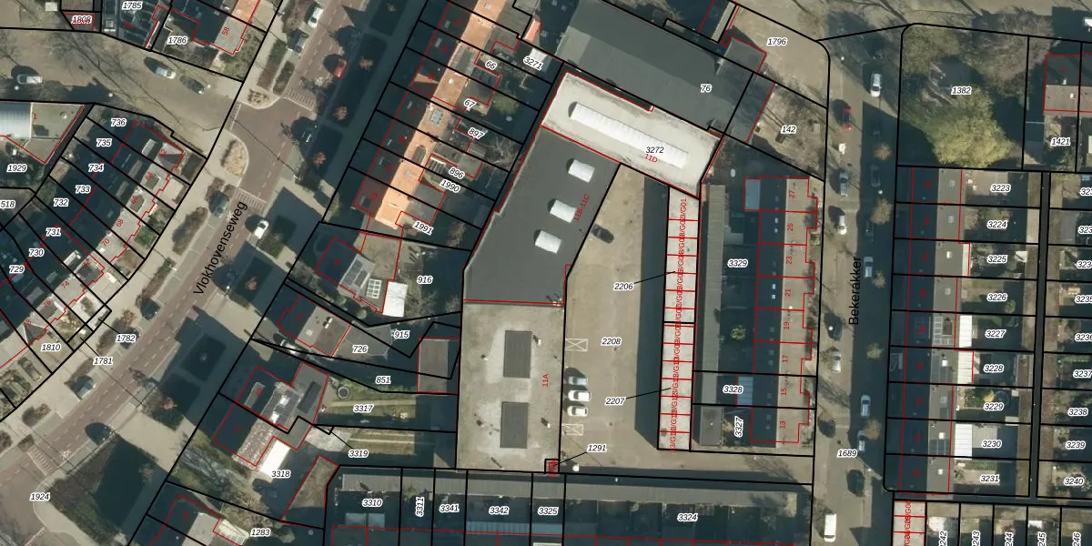Bekerakker 11-B is gelegen op kadastraal perceel WSL01M3272. Deze kadastrale aanduiding is uniek en wordt gebruikt door het Kadaster om eigendomsrechten en andere zakelijke rechten vast te leggen. Het perceel maakt onderdeel uit van de kadastrale gemeente Woensel.