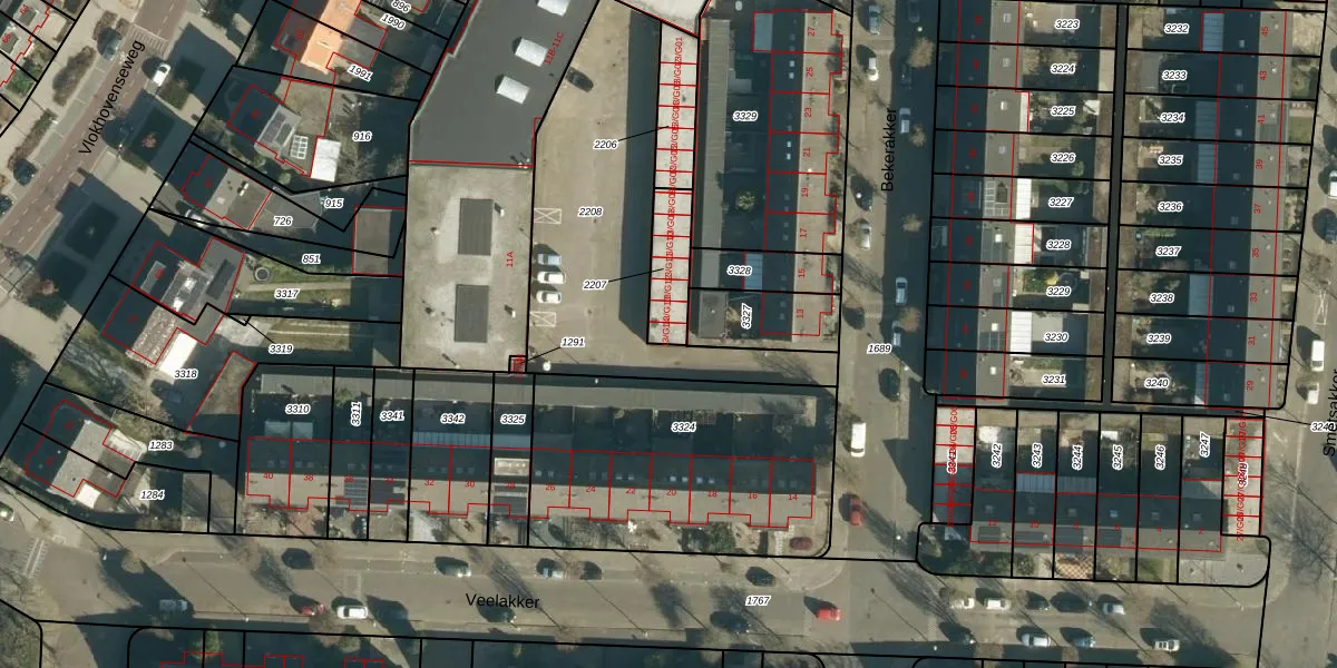 Het adres is gelegen op perceel 2207 in de sectie M en de kadastrale gemeente Woensel. De kadastrale aanduiding is aldus WSL01-M-2207. De gemiddelde perceelgrootte in Woensel is 1039,01 m². Dit perceel is kleiner: de perceeloppervlakte bedraagt 140 m². Het kleinste perceel in de kadastrale gemeente is 0 m² groot. De grootste perceeloppervlakte is 74,9 ha. Op het perceel liggen in totaal 7 adressen. De huidige grenzen van het perceel zijn digitaal in de Basisregistratie Kadaster (BRK) geregistreerd op 17-09-2014.