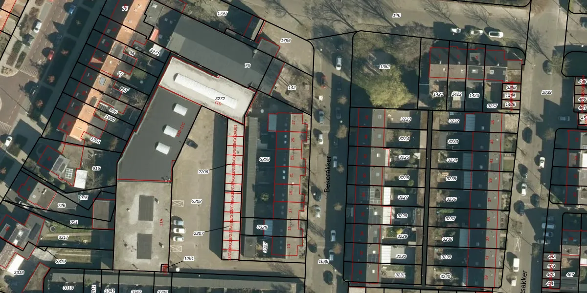 Het perceel waarop Bekerakker 25 staat heeft een oppervlakte van 890 m². Dit is een groot perceel. De perceeloppervlakte wordt geregistreerd door het Kadaster. Gedetailleerde informatie over de maten van dit perceel kunt u vinden in het rapport Kadastrale kaart met maatvoering van Bekerakker 25.