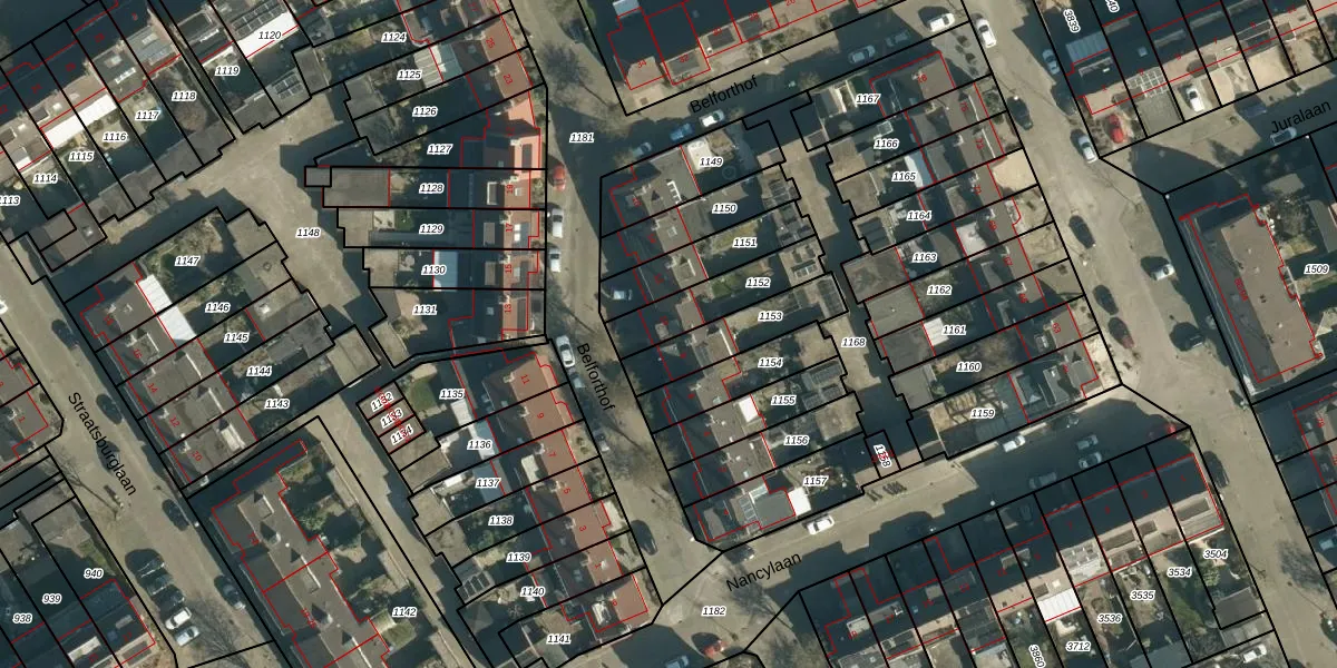 Gebruik de zoekbalk of klik op een perceel voor informatie over de adressen binnen dit perceel.