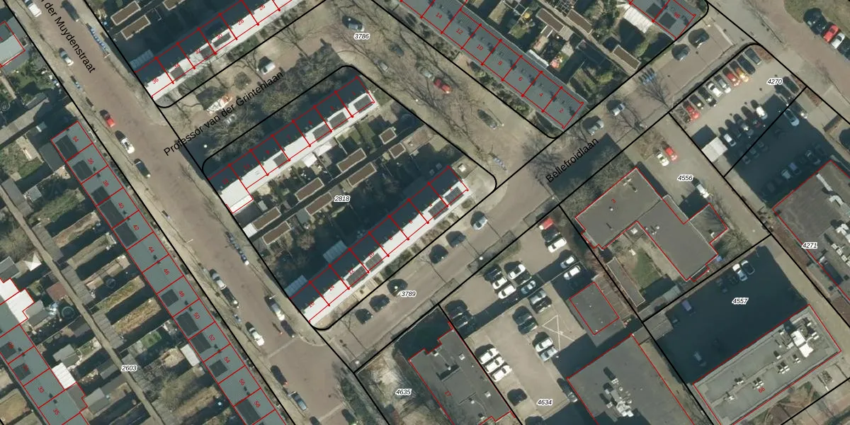 Bellefroidlaan 4 is gelegen op kadastraal perceel STR03C2818. Deze kadastrale aanduiding is uniek en wordt gebruikt door het Kadaster om eigendomsrechten en andere zakelijke rechten vast te leggen. Het perceel maakt onderdeel uit van de kadastrale gemeente Strijp.