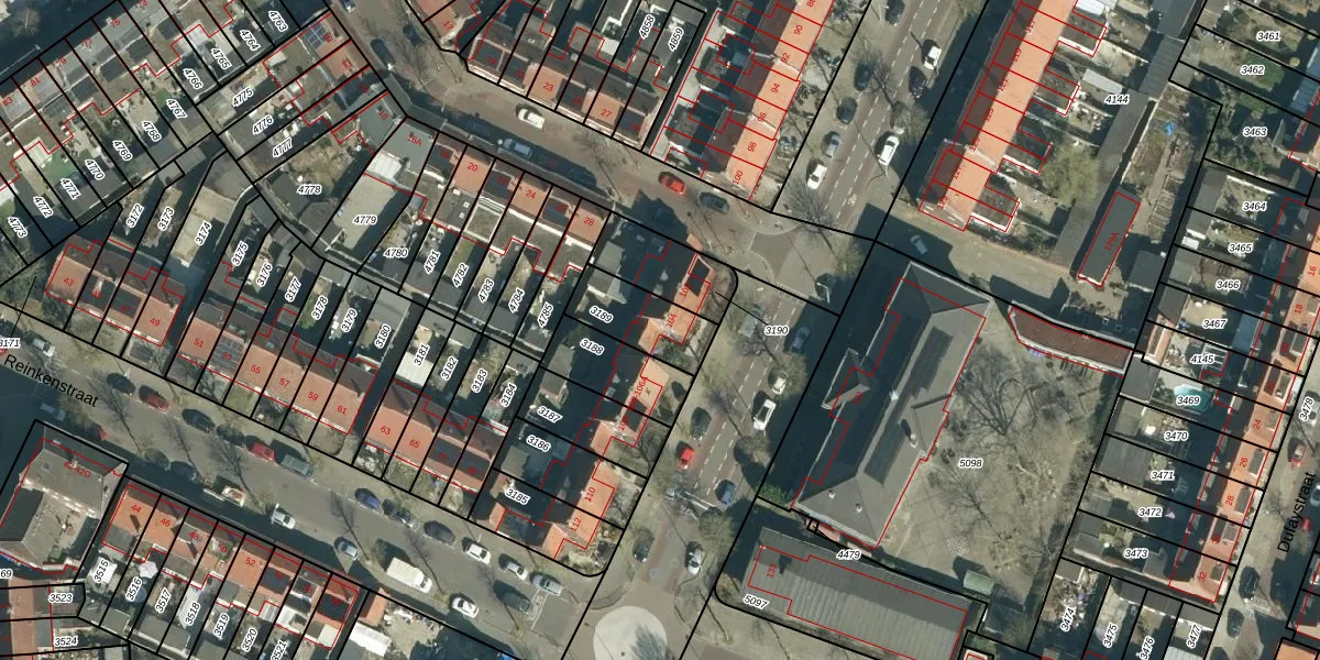 Gebruik de zoekbalk of klik op een perceel voor informatie over de adressen binnen dit perceel.