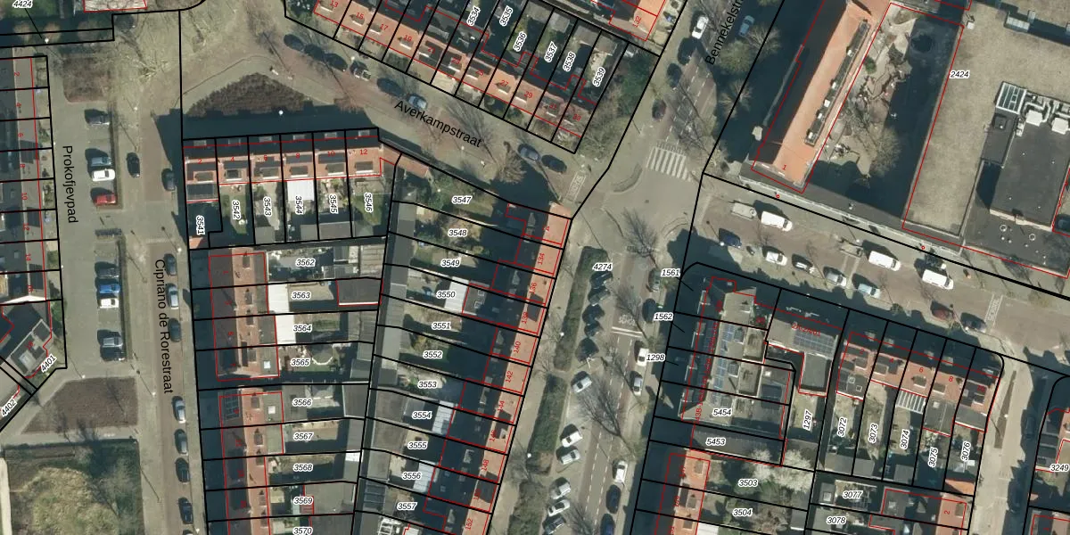 Gebruik de zoekbalk of klik op een perceel voor informatie over de adressen binnen dit perceel.