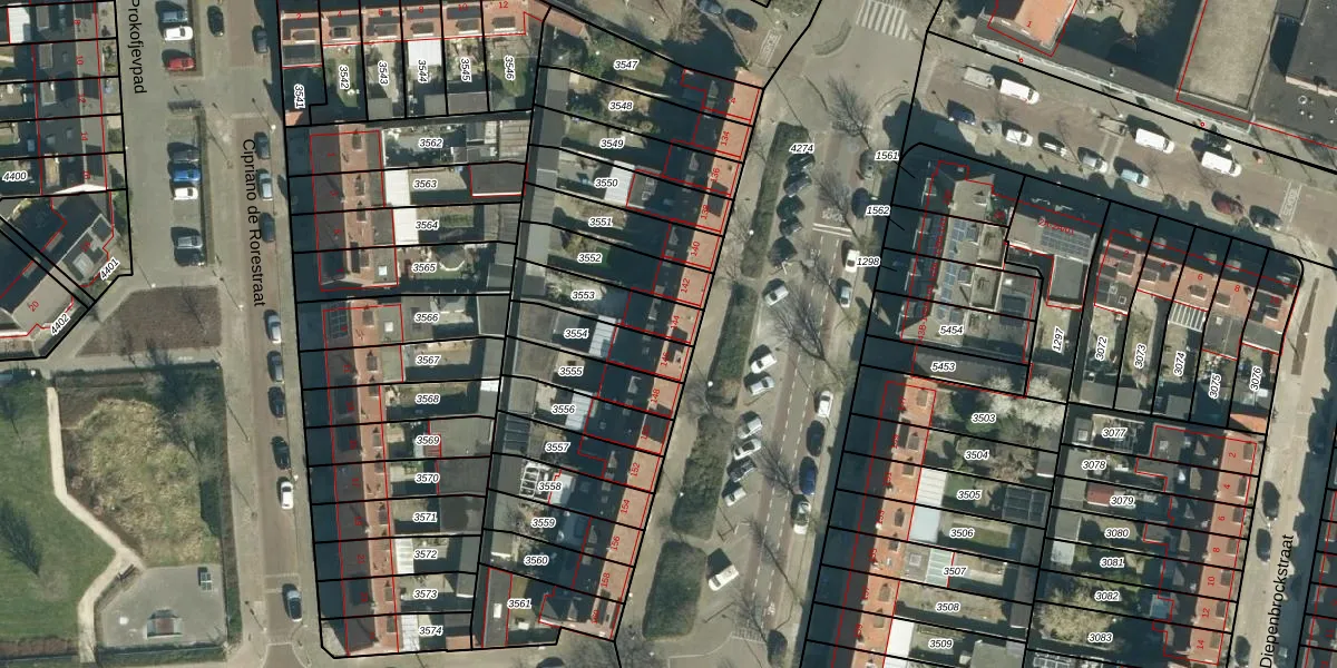 Gebruik de zoekbalk of klik op een perceel voor informatie over de adressen binnen dit perceel.