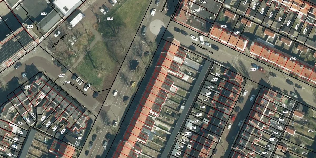 Het perceel waarop Bennekelstraat 33 staat heeft een oppervlakte van 6805 m². Dit is een zeer groot perceel. De perceeloppervlakte wordt geregistreerd door het Kadaster. Gedetailleerde informatie over de maten van dit perceel kunt u vinden in het rapport Kadastrale kaart met maatvoering van Bennekelstraat 33.