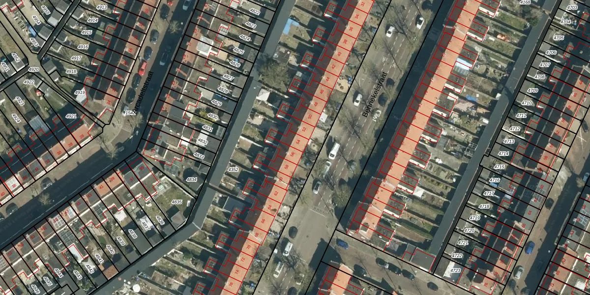 Het perceel waarop Bennekelstraat 54 staat heeft een oppervlakte van 6559 m². Dit is een zeer groot perceel. De perceeloppervlakte wordt geregistreerd door het Kadaster. Gedetailleerde informatie over de maten van dit perceel kunt u vinden in het rapport Kadastrale kaart met maatvoering van Bennekelstraat 54.