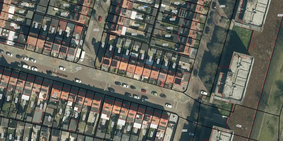 Benoitstraat 21 is gelegen op kadastraal perceel GTL01C3393. Deze kadastrale aanduiding is uniek en wordt gebruikt door het Kadaster om eigendomsrechten en andere zakelijke rechten vast te leggen. Het perceel maakt onderdeel uit van de kadastrale gemeente Gestel.