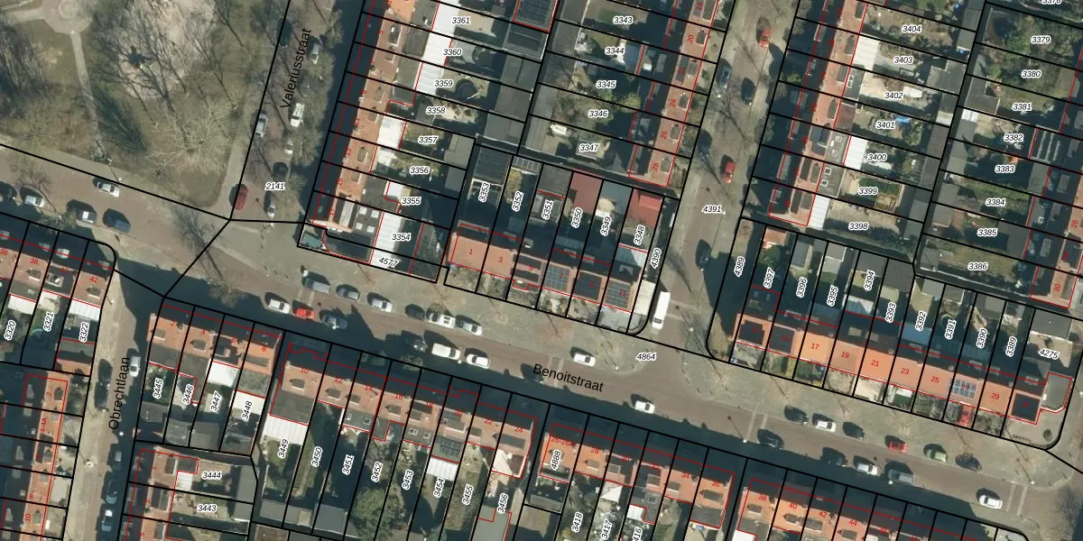 Benoitstraat 5 is gelegen op kadastraal perceel GTL01C3351. Deze kadastrale aanduiding is uniek en wordt gebruikt door het Kadaster om eigendomsrechten en andere zakelijke rechten vast te leggen. Het perceel maakt onderdeel uit van de kadastrale gemeente Gestel.