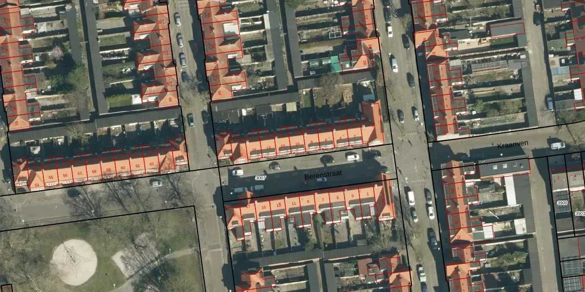 Het perceel waarop Berenstraat 10 staat heeft een oppervlakte van 1,2 ha. Dit is een zeer groot perceel. De perceeloppervlakte wordt geregistreerd door het Kadaster. Gedetailleerde informatie over de maten van dit perceel kunt u vinden in het rapport Kadastrale kaart met maatvoering van Berenstraat 10.