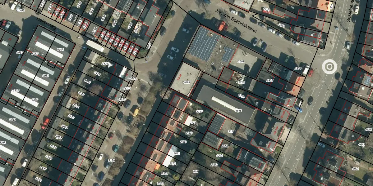 Het adres is gelegen op perceel 4875 in de sectie C en de kadastrale gemeente Gestel. De kadastrale aanduiding is aldus GTL01-C-4875. Het perceel is kleiner dan gemiddeld in Gestel. Het perceel is 204 m² groot, terwijl het gemiddelde ligt op 1012,11 m². De grootste perceeloppervlakte in de kadastrale gemeente is 73,6 ha. De kleinste oppervlakte bedraagt 0 m². Op het perceel zijn 8 adressen aanwezig. De huidige grenzen van het perceel zijn digitaal in de Basisregistratie Kadaster (BRK) geregistreerd op 08-02-2022.