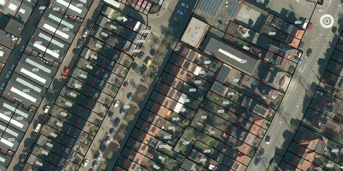 Gebruik de zoekbalk of klik op een perceel voor informatie over de adressen binnen dit perceel.
