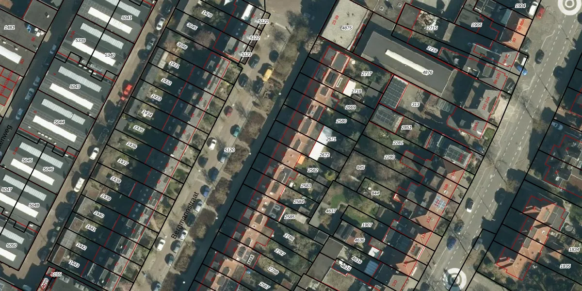 Gebruik de zoekbalk of klik op een perceel voor informatie over de adressen binnen dit perceel.