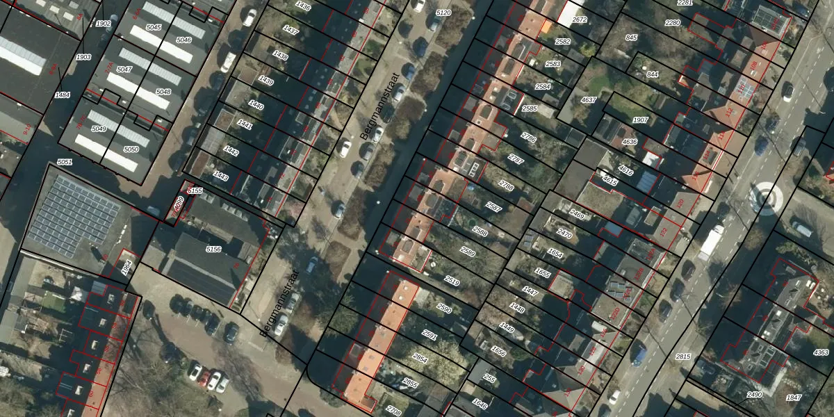 Het perceel waarop Bergmannstraat 69 staat heeft een oppervlakte van 197 m². Dit is een middelgroot perceel. De perceeloppervlakte wordt geregistreerd door het Kadaster. Gedetailleerde informatie over de maten van dit perceel kunt u vinden in het rapport Kadastrale kaart met maatvoering van Bergmannstraat 69.