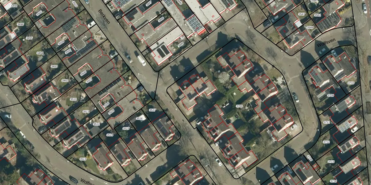 Het perceel waarop Berkven 36 staat heeft een oppervlakte van 3149 m². Dit is een zeer groot perceel. De perceeloppervlakte wordt geregistreerd door het Kadaster. Gedetailleerde informatie over de maten van dit perceel kunt u vinden in het rapport Kadastrale kaart met maatvoering van Berkven 36.