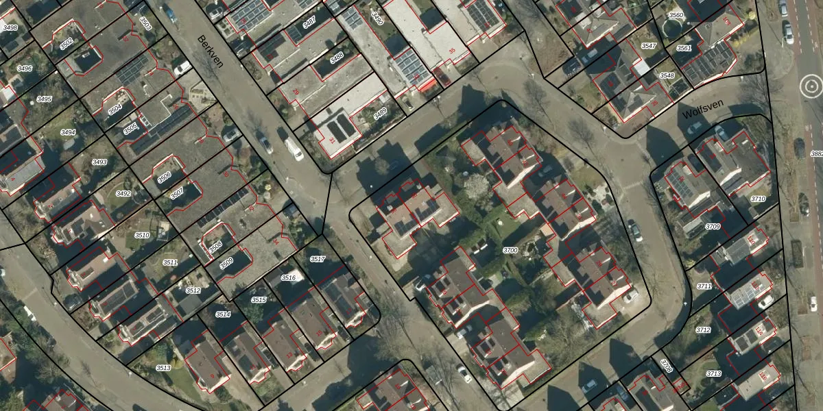 Het perceel waarop Berkven 38 staat heeft een oppervlakte van 3149 m². Dit is een zeer groot perceel. De perceeloppervlakte wordt geregistreerd door het Kadaster. Gedetailleerde informatie over de maten van dit perceel kunt u vinden in het rapport Kadastrale kaart met maatvoering van Berkven 38.