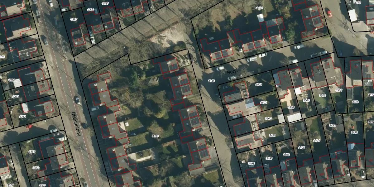 Het perceel waarop Beryl 11 staat heeft een oppervlakte van 5328 m². Dit is een zeer groot perceel. De perceeloppervlakte wordt geregistreerd door het Kadaster. Gedetailleerde informatie over de maten van dit perceel kunt u vinden in het rapport Kadastrale kaart met maatvoering van Beryl 11.