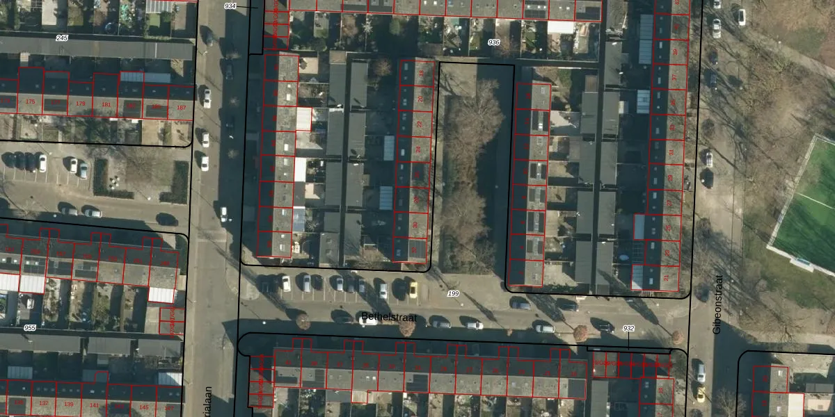 Het perceel waarop Bethelstraat 28 staat heeft een oppervlakte van 7505 m². Dit is een zeer groot perceel. De perceeloppervlakte wordt geregistreerd door het Kadaster. Gedetailleerde informatie over de maten van dit perceel kunt u vinden in het rapport Kadastrale kaart met maatvoering van Bethelstraat 28.