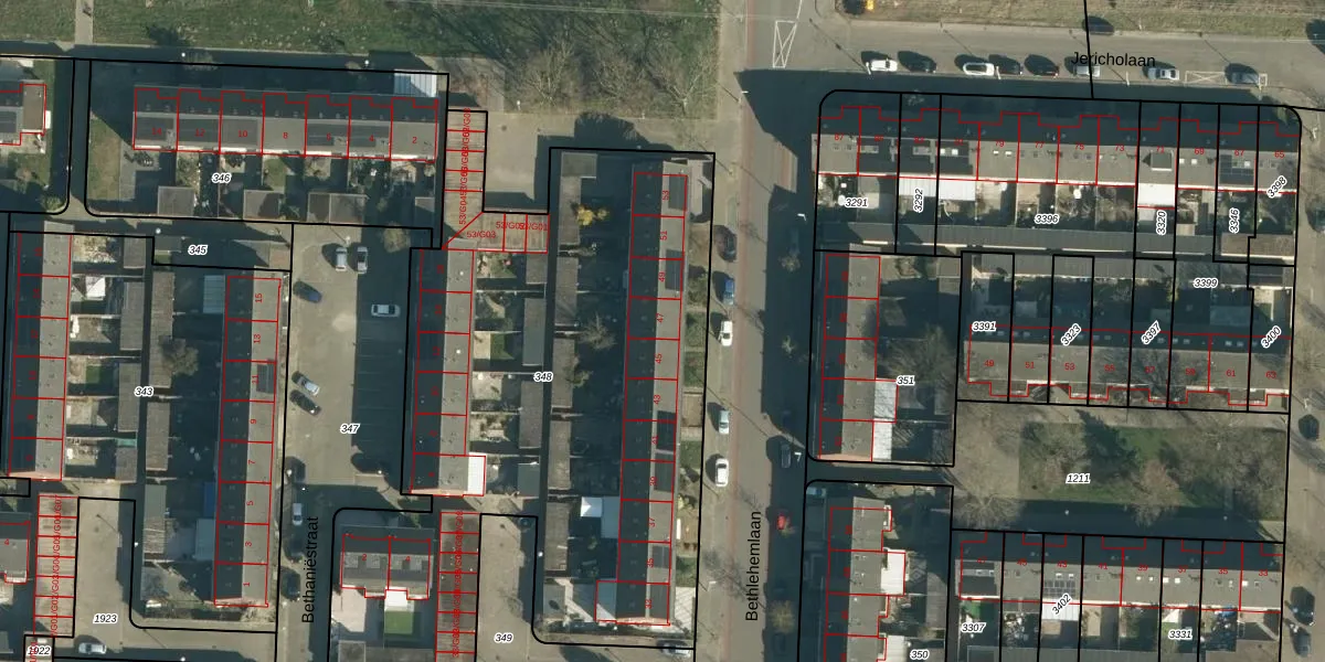 Het perceel waarop Bethlehemlaan 47 staat heeft een oppervlakte van 4736 m². Dit is een zeer groot perceel. De perceeloppervlakte wordt geregistreerd door het Kadaster. Gedetailleerde informatie over de maten van dit perceel kunt u vinden in het rapport Kadastrale kaart met maatvoering van Bethlehemlaan 47.