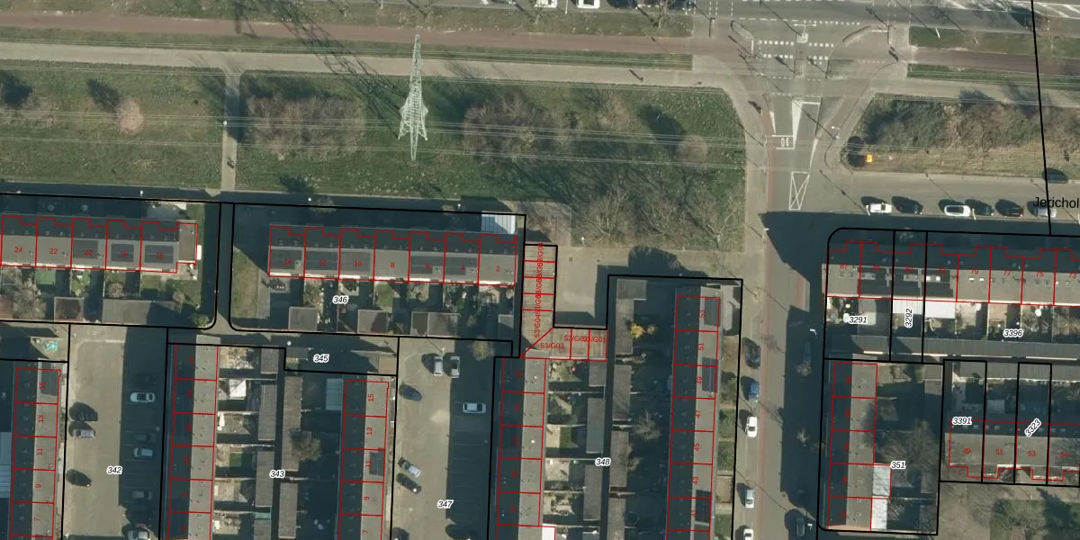 Het perceel waarop Bethlehemlaan 53-G07 staat heeft een oppervlakte van 4736 m². Dit is een zeer groot perceel. De perceeloppervlakte wordt geregistreerd door het Kadaster. Gedetailleerde informatie over de maten van dit perceel kunt u vinden in het rapport Kadastrale kaart met maatvoering van Bethlehemlaan 53-G07.
