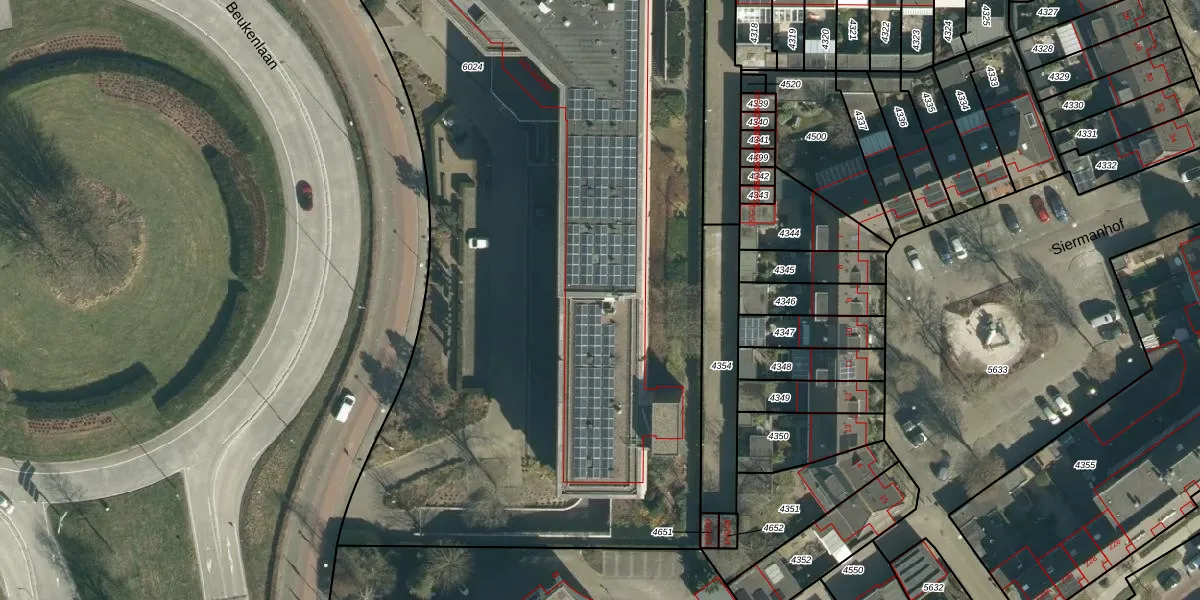 Beukenlaan 143-291 is gelegen op kadastraal perceel STR03C6024. Deze kadastrale aanduiding is uniek en wordt gebruikt door het Kadaster om eigendomsrechten en andere zakelijke rechten vast te leggen. Het perceel maakt onderdeel uit van de kadastrale gemeente Strijp.