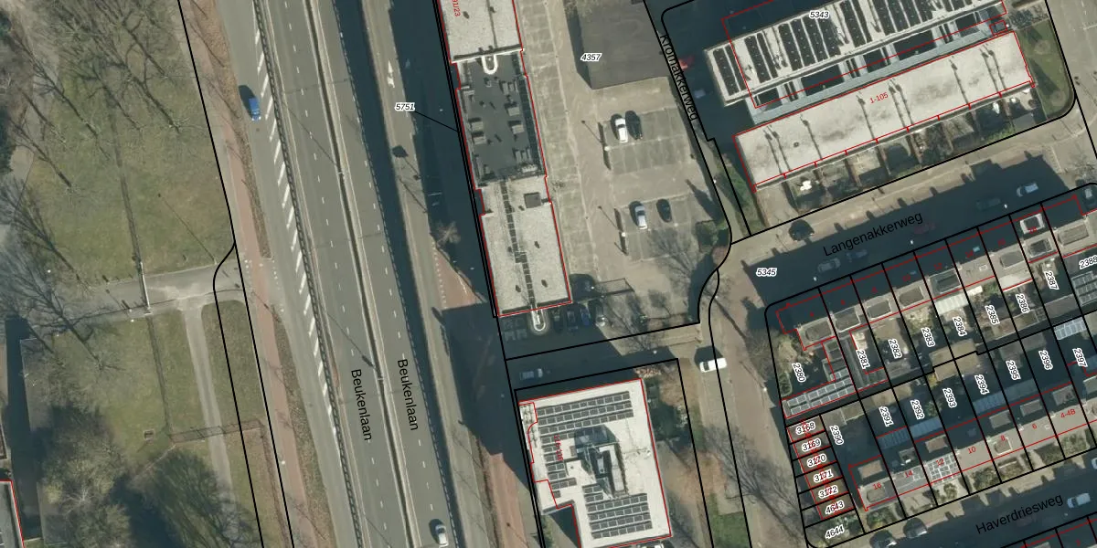 Het perceel waarop Beukenlaan 79-37 staat heeft een oppervlakte van 4594 m². Dit is een zeer groot perceel. De perceeloppervlakte wordt geregistreerd door het Kadaster. Gedetailleerde informatie over de maten van dit perceel kunt u vinden in het rapport Kadastrale kaart met maatvoering van Beukenlaan 79-37.