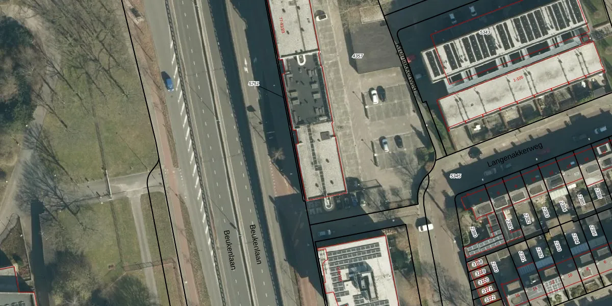 Het perceel waarop Beukenlaan 87-25 staat heeft een oppervlakte van 4594 m². Dit is een zeer groot perceel. De perceeloppervlakte wordt geregistreerd door het Kadaster. Gedetailleerde informatie over de maten van dit perceel kunt u vinden in het rapport Kadastrale kaart met maatvoering van Beukenlaan 87-25.