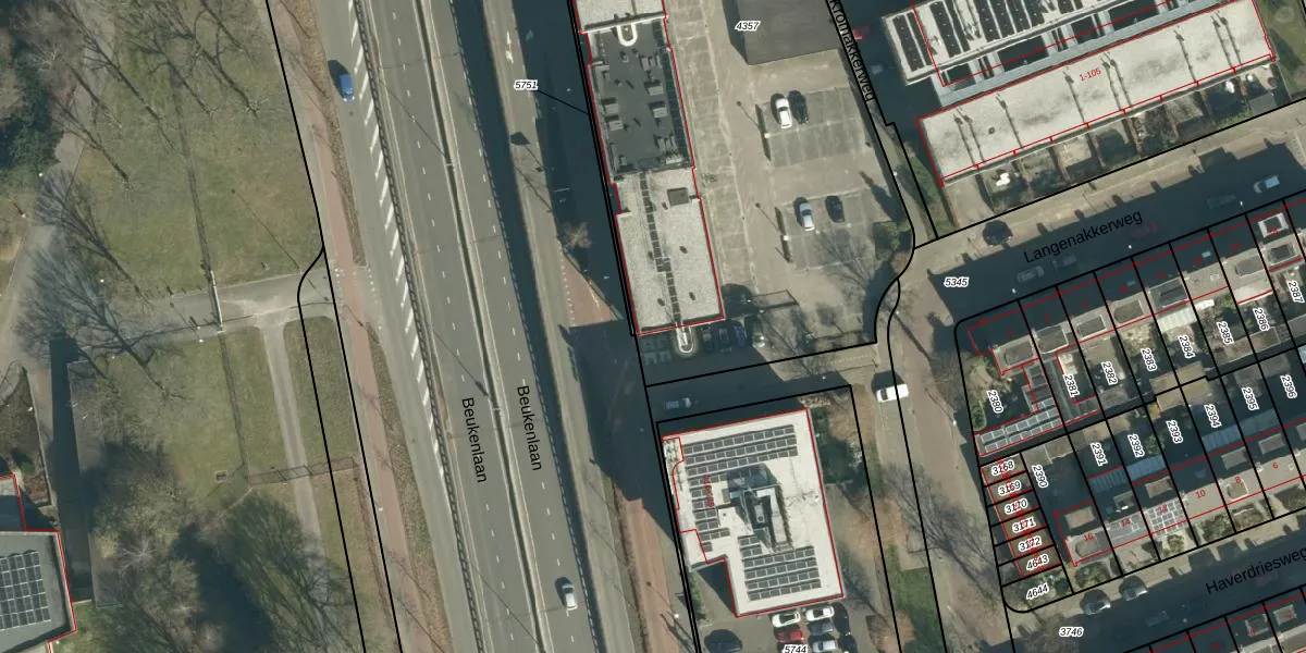 Het perceel waarop Beukenlaan 87-33 staat heeft een oppervlakte van 4594 m². Dit is een zeer groot perceel. De perceeloppervlakte wordt geregistreerd door het Kadaster. Gedetailleerde informatie over de maten van dit perceel kunt u vinden in het rapport Kadastrale kaart met maatvoering van Beukenlaan 87-33.