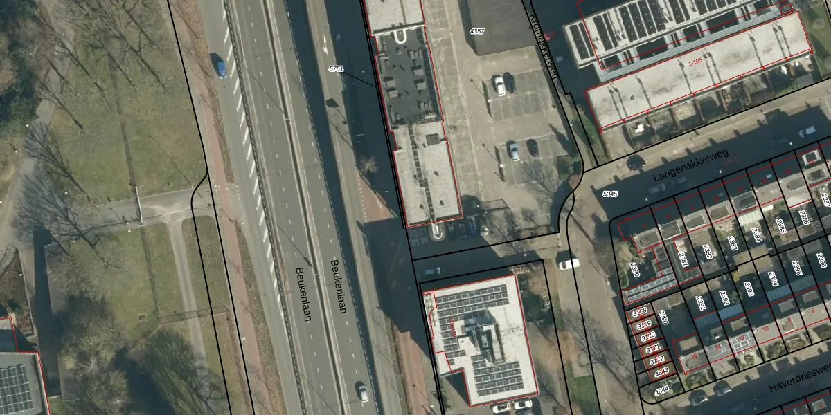 Het perceel waarop Beukenlaan 87-31 staat heeft een oppervlakte van 4594 m². Dit is een zeer groot perceel. De perceeloppervlakte wordt geregistreerd door het Kadaster. Gedetailleerde informatie over de maten van dit perceel kunt u vinden in het rapport Kadastrale kaart met maatvoering van Beukenlaan 87-31.
