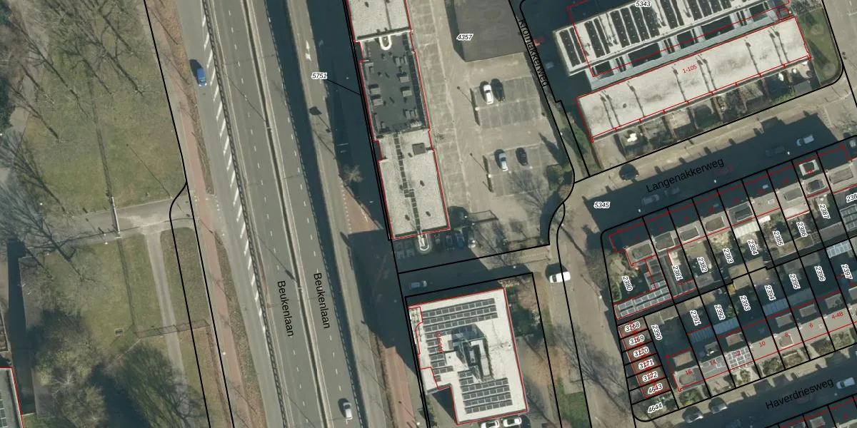 Het perceel waarop Beukenlaan 87-37 staat heeft een oppervlakte van 4594 m². Dit is een zeer groot perceel. De perceeloppervlakte wordt geregistreerd door het Kadaster. Gedetailleerde informatie over de maten van dit perceel kunt u vinden in het rapport Kadastrale kaart met maatvoering van Beukenlaan 87-37.