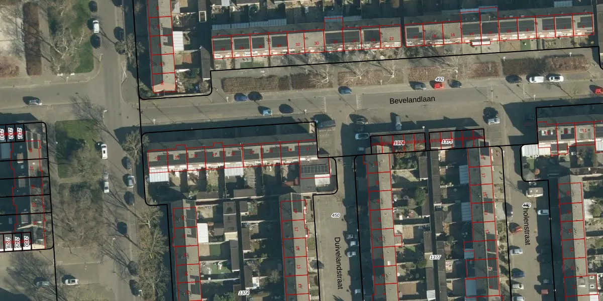 Het perceel waarop Bevelandlaan 17 staat heeft een oppervlakte van 4590 m². Dit is een zeer groot perceel. De perceeloppervlakte wordt geregistreerd door het Kadaster. Gedetailleerde informatie over de maten van dit perceel kunt u vinden in het rapport Kadastrale kaart met maatvoering van Bevelandlaan 17.