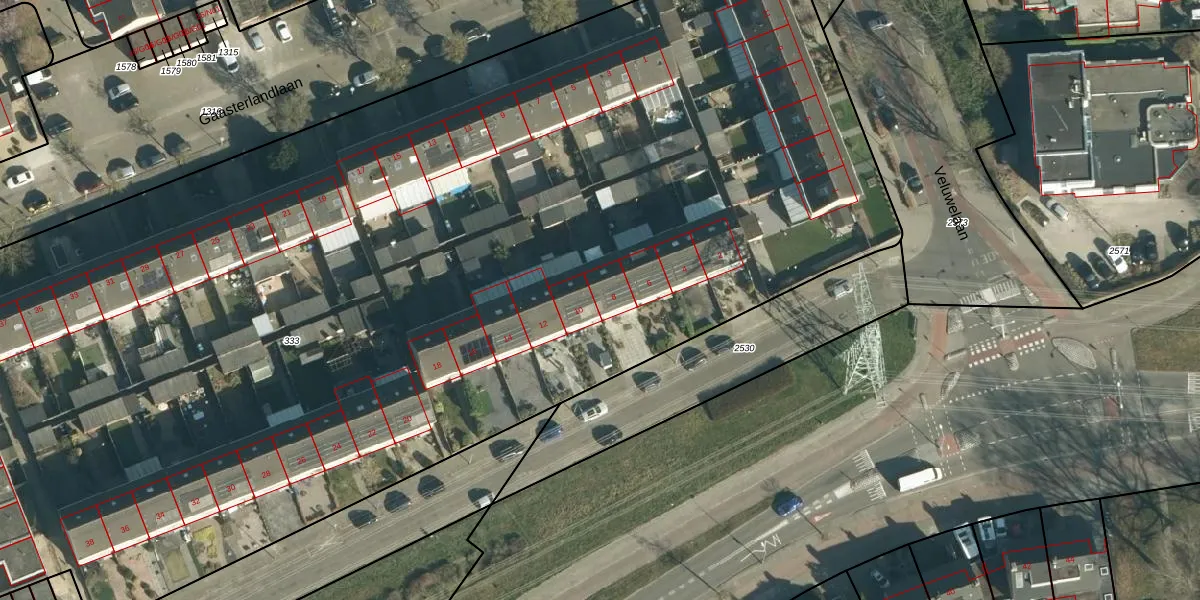 Het perceel waarop Biesboslaan 8 staat heeft een oppervlakte van 1,0 ha. Dit is een zeer groot perceel. De perceeloppervlakte wordt geregistreerd door het Kadaster. Gedetailleerde informatie over de maten van dit perceel kunt u vinden in het rapport Kadastrale kaart met maatvoering van Biesboslaan 8.