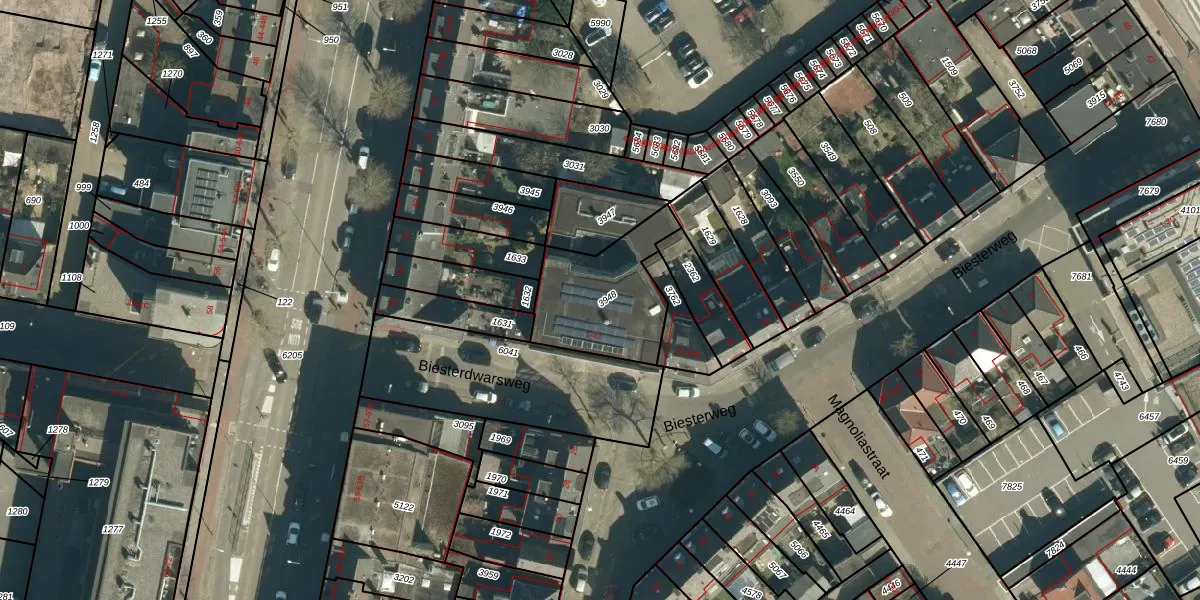 Het perceel waarop Biesterdwarsweg 19 staat heeft een oppervlakte van 395 m². Dit is een groot perceel. De perceeloppervlakte wordt geregistreerd door het Kadaster. Gedetailleerde informatie over de maten van dit perceel kunt u vinden in het rapport Kadastrale kaart met maatvoering van Biesterdwarsweg 19.