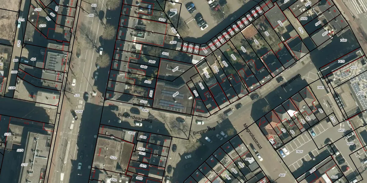 Het perceel waarop Biesterdwarsweg 9 staat heeft een oppervlakte van 395 m². Dit is een groot perceel. De perceeloppervlakte wordt geregistreerd door het Kadaster. Gedetailleerde informatie over de maten van dit perceel kunt u vinden in het rapport Kadastrale kaart met maatvoering van Biesterdwarsweg 9.