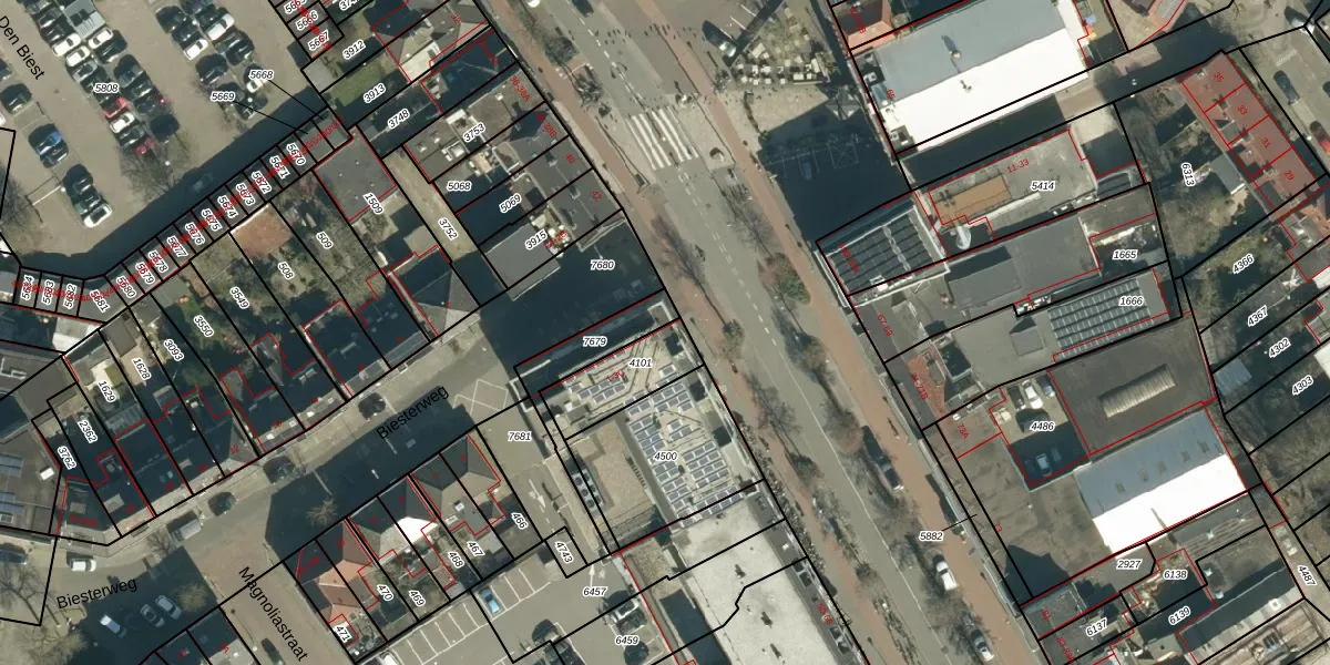 Biesterweg 1-A is gelegen op kadastraal perceel STM00D4101. Deze kadastrale aanduiding is uniek en wordt gebruikt door het Kadaster om eigendomsrechten en andere zakelijke rechten vast te leggen. Het perceel maakt onderdeel uit van de kadastrale gemeente Stratum.