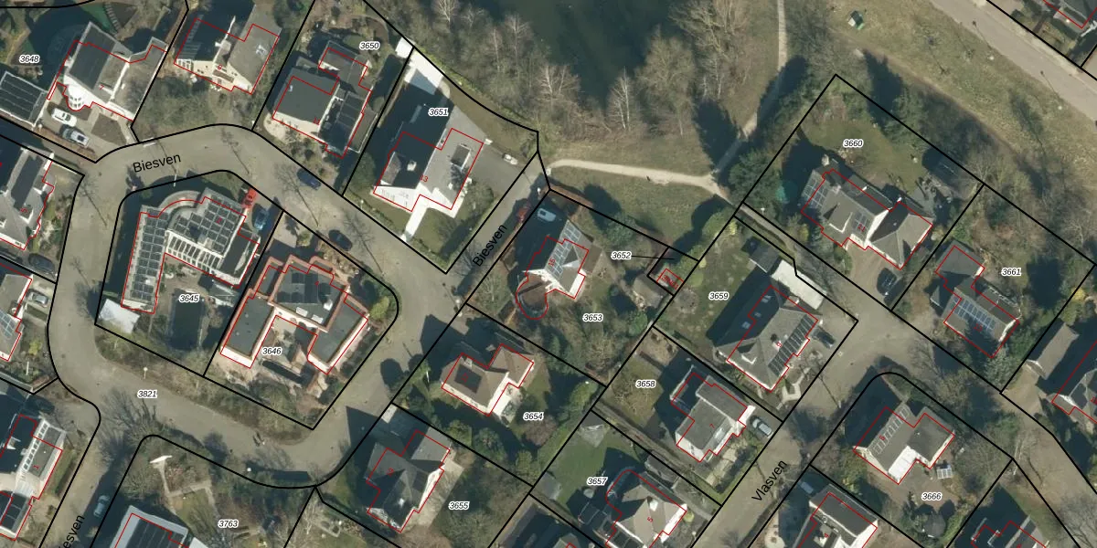 Het perceel waarop Biesven 15 staat heeft een oppervlakte van 766 m². Dit is een groot perceel. De perceeloppervlakte wordt geregistreerd door het Kadaster. Gedetailleerde informatie over de maten van dit perceel kunt u vinden in het rapport Kadastrale kaart met maatvoering van Biesven 15.