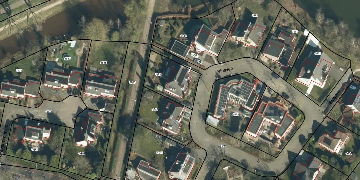 Het perceel waarop Biesven 5 staat heeft een oppervlakte van 606 m². Dit is een groot perceel. De perceeloppervlakte wordt geregistreerd door het Kadaster. Gedetailleerde informatie over de maten van dit perceel kunt u vinden in het rapport Kadastrale kaart met maatvoering van Biesven 5.