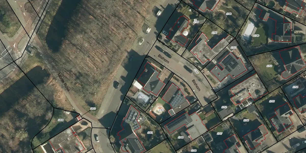 Het perceel waarop Bishorn 2 staat heeft een oppervlakte van 599 m². Dit is een groot perceel. De perceeloppervlakte wordt geregistreerd door het Kadaster. Gedetailleerde informatie over de maten van dit perceel kunt u vinden in het rapport Kadastrale kaart met maatvoering van Bishorn 2.